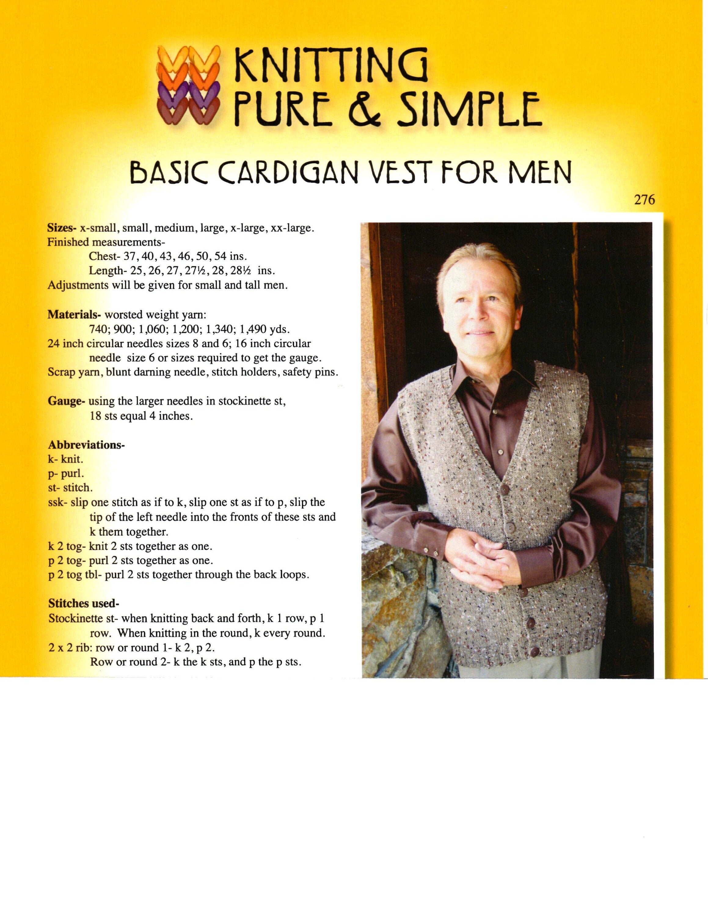 Basic Cardigan Vest For Men Knitting Pure Simple 276 Etsy